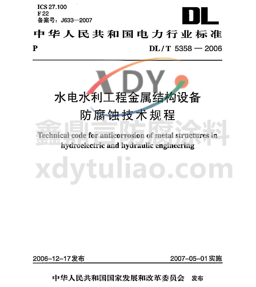 DL/T 5358-2006水電水利工程金屬結構大氣中的防腐配套涂層系統標準