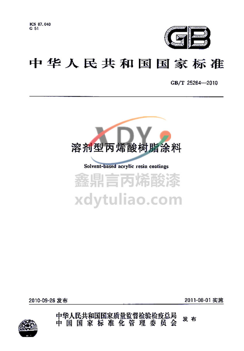 溶劑型丙烯酸樹脂涂料國家標準GB/T 25264-2010