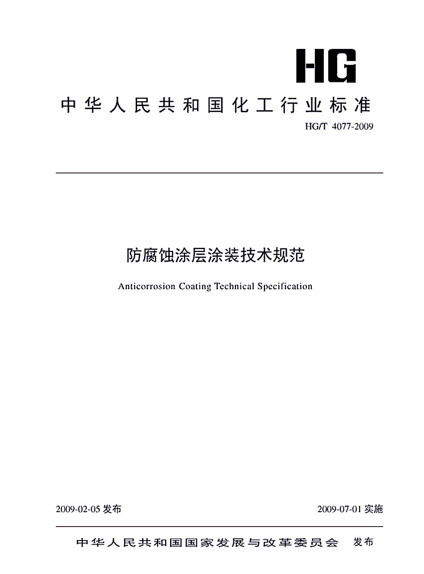 防腐蝕涂層涂裝技術規范標準HG/T 4077-2009